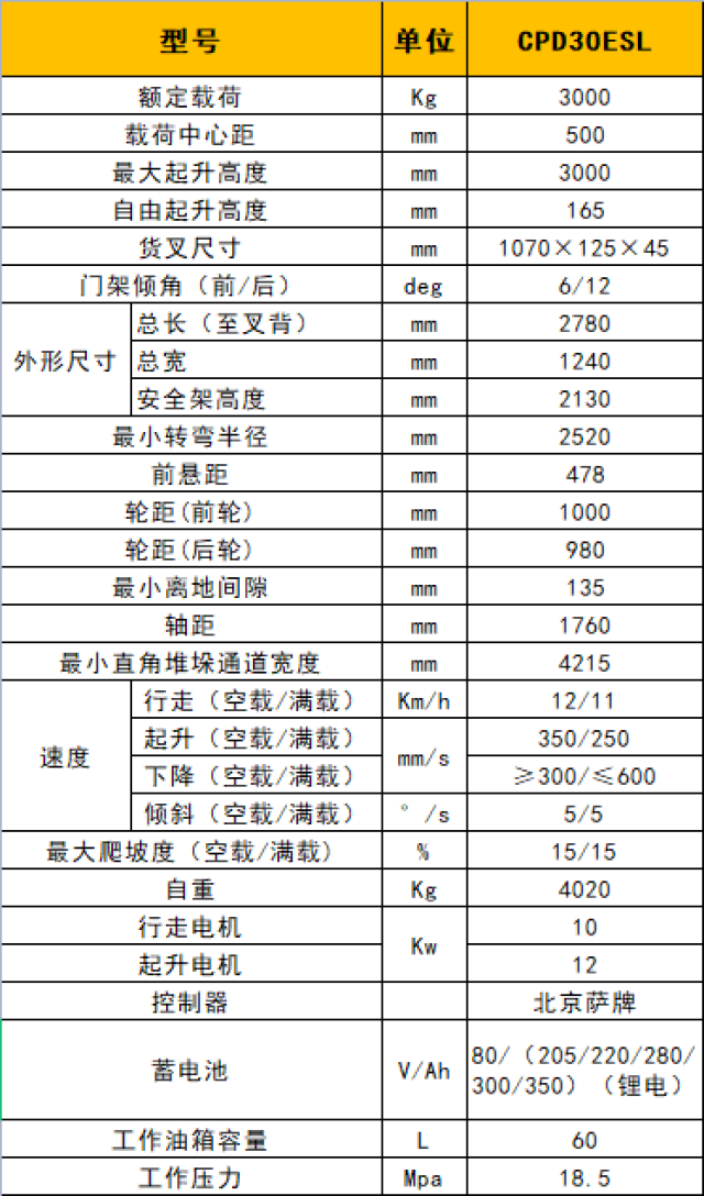 ·性能優異:起升/傾斜、行駛、爬坡性能與內燃車完全相同;